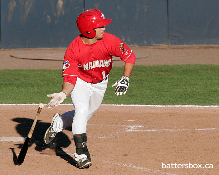 Gunnar Heidt trots down to first base in his first plate appearance in Vancouver after drawing a bases-loaded walk to put the Canadians on the board first. Boomer Collins would follow with an RBI single to make it 2-0 after one.